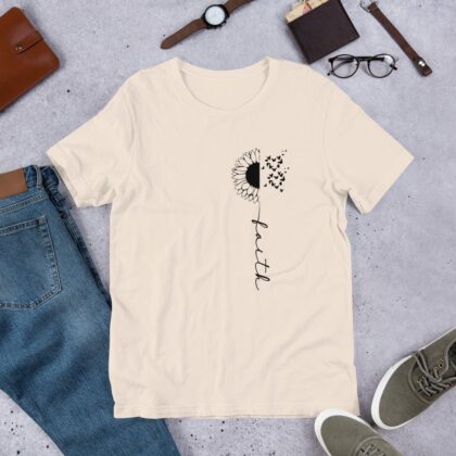 Faith Cross Sunflower Butterflies (black design) Short-Sleeve Unisex T-Shirt