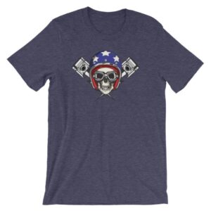 Be the first to review “All American Rider Skull Motorcycle Helmet Pistons T-Shirt”