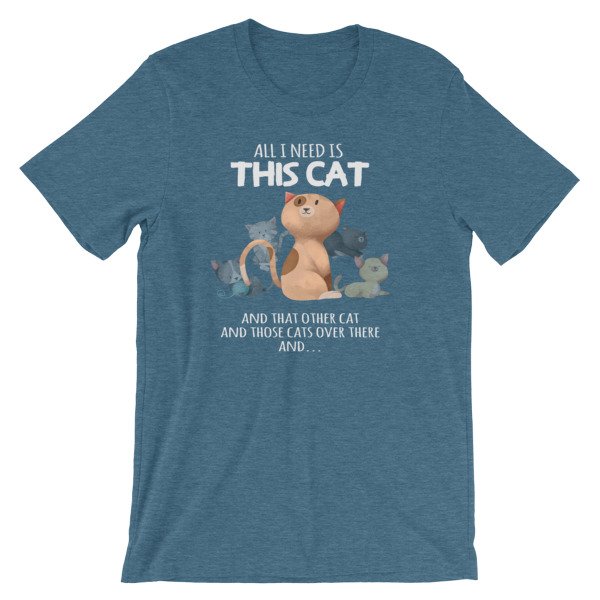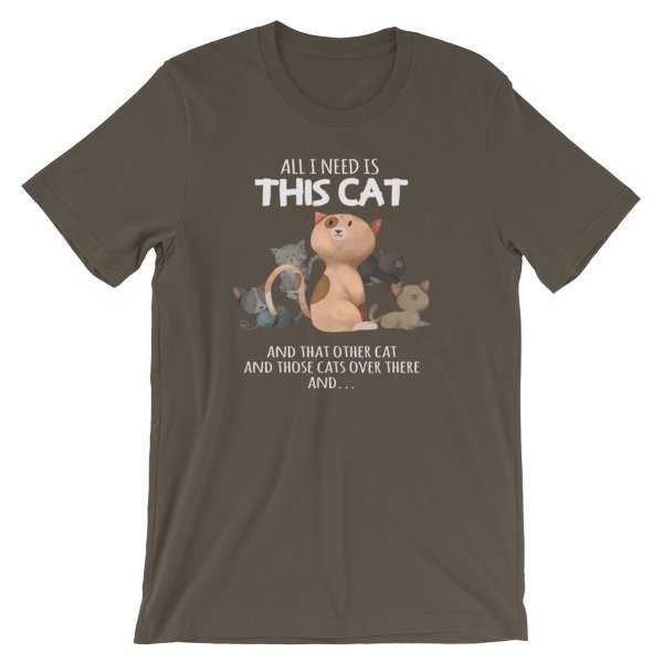 Love cats? All you need in your life is all the kittens in the world? Then this is the perfect shirt for you to wear around . Perfect gift for the cat lover in your life. Must have all the kitties. Yes All I need is this cat and that other cat and those cats over there and. Let everyone know that you are ok with all the cats.