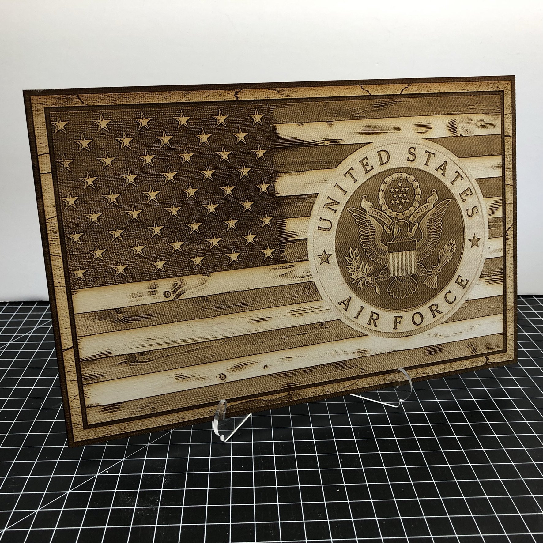 American Flag with Air Force Emblem – Laser Engraved Sign