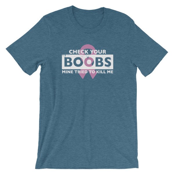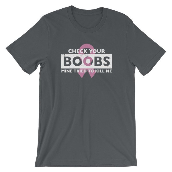 Be the first to review “Check Your Boobs Mine Tried to Kill Me Breast Cancer Awareness T-Shirt”