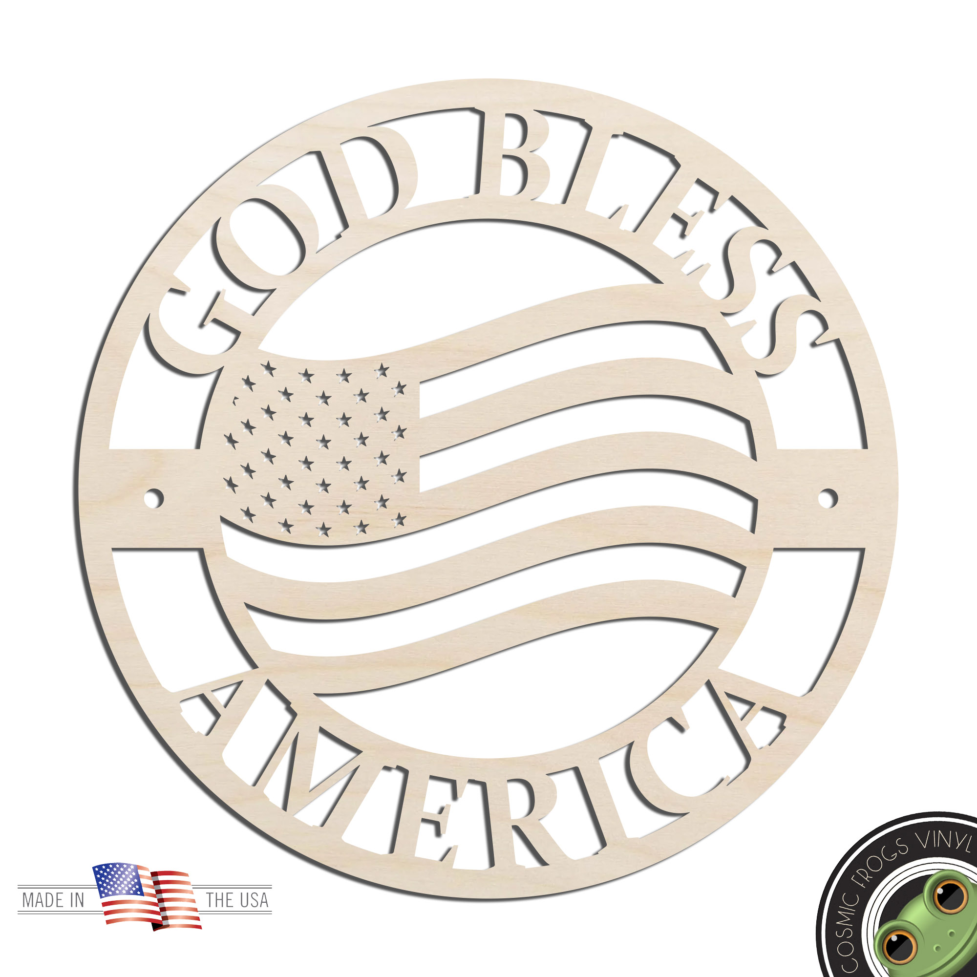 God Bless America #1 Wavy Flag Sign Laser Cut Out Unfinished Wood Shape Craft Supply