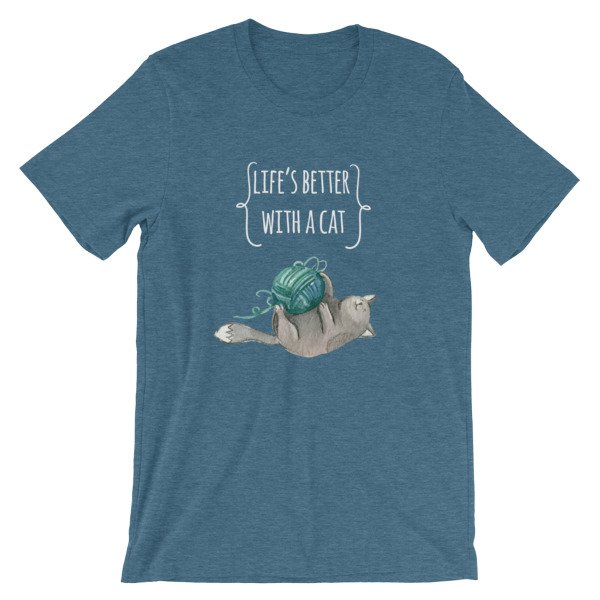 Do you or someone you know love cats or kittens? This is the perfect shirt for any cat lover. Let everyone know that life is better with a cat. Great shirt for anyone that loves their feline pet