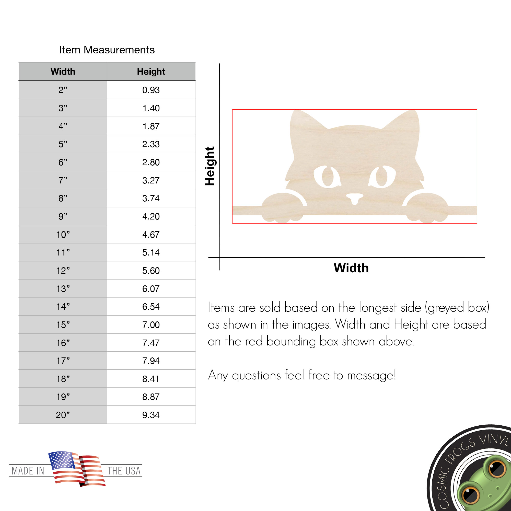Size is base on the longest side of the object.