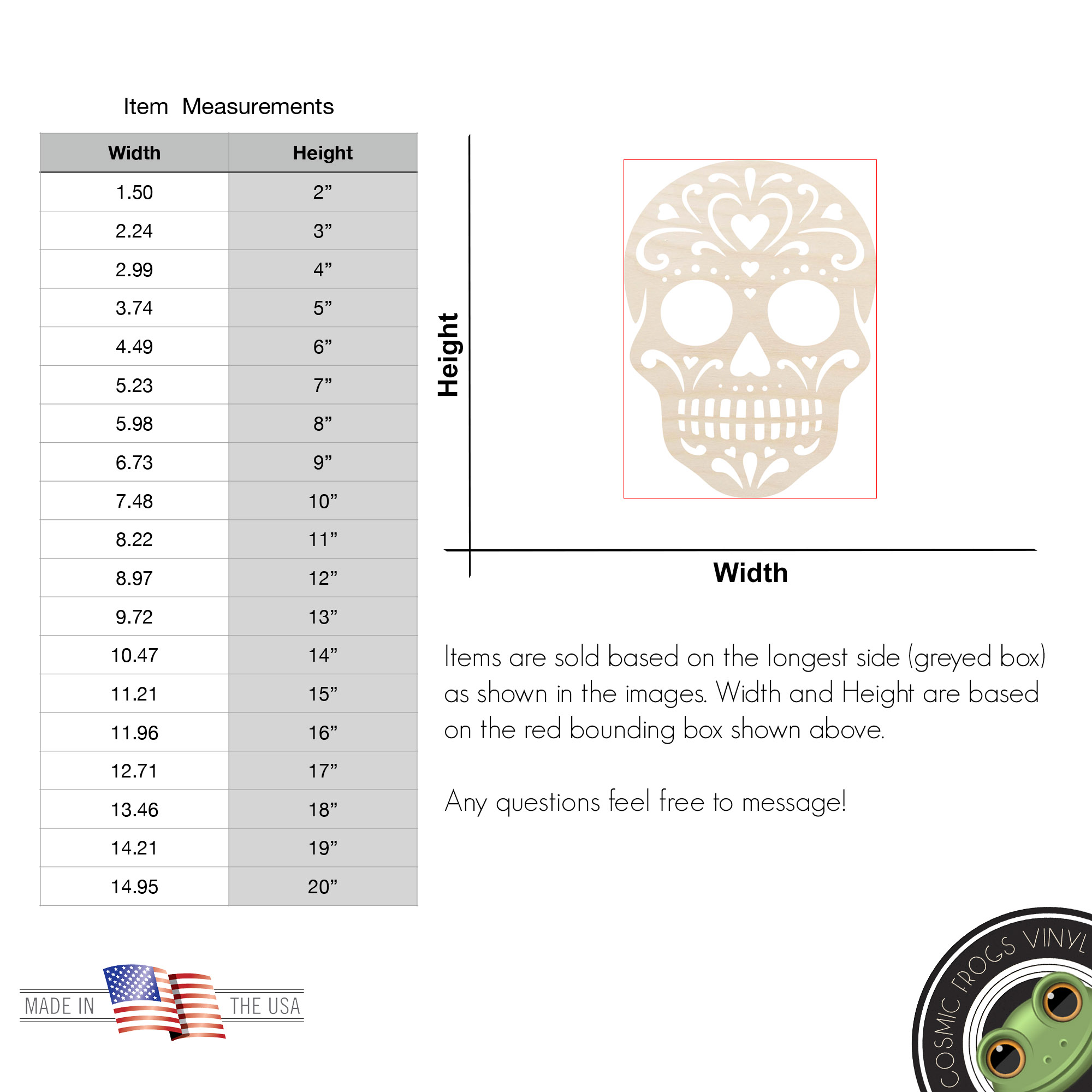 Size is base on the longest side of the object.