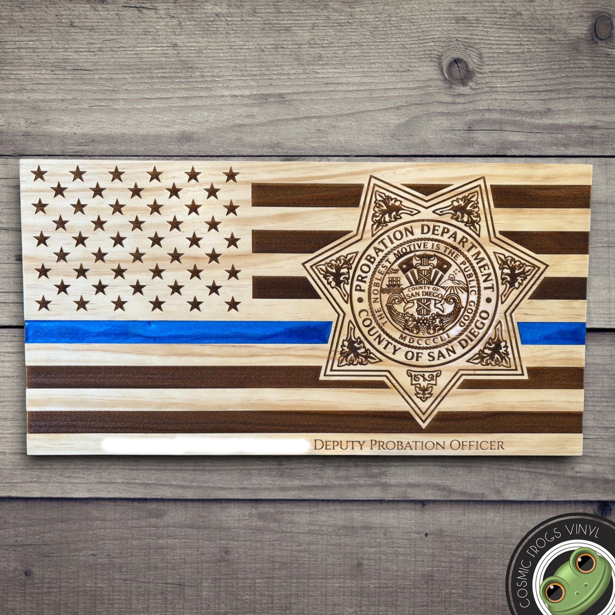 Wooden Carved American Flag San Diego Probations Badge