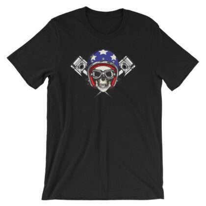 All American Rider Skull Motorcycle Helmet Pistons T-Shirt