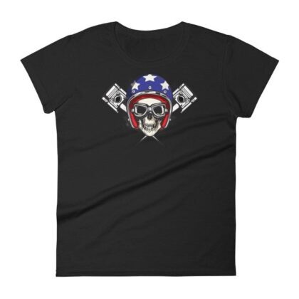 All American Rider Skull Motorcycle Helmet Pistons Women's T-Shirt