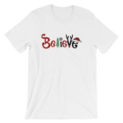 Believe All Things Christmas Rudolph Santa Holiday T-Shirt
