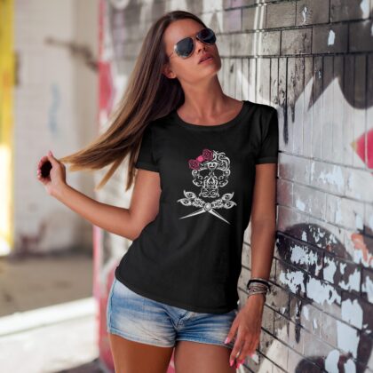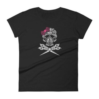 Hairdresser Skull Scissors and Bow Zentangle Style Women's T-Shirt