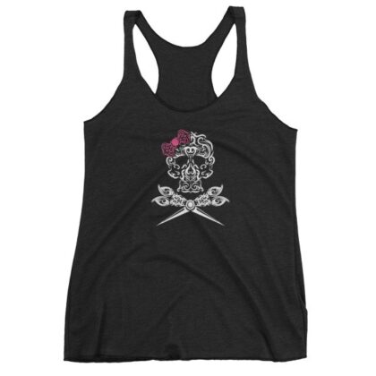 Hairdresser Skull Scissors and Bow Zentangle Style Women's tank top